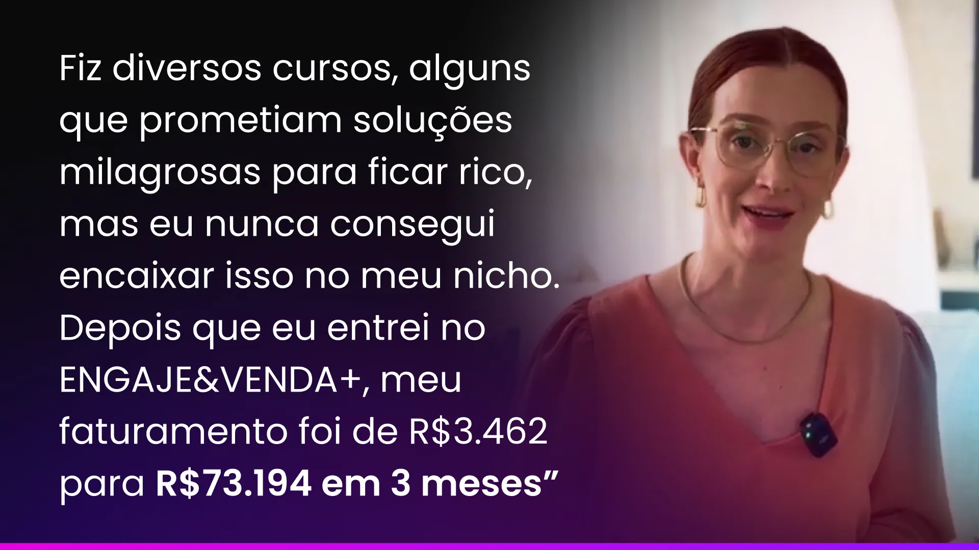 “Fiz diversos cursos, alguns que prometiam soluções milagrosas para ficar rico, mas eu nunca consegui encaixar isso no meu nicho. Depois da metodologia do Kiso, eu saí de R$3.462 de faturamento para R$73.194 em 3 meses.”
